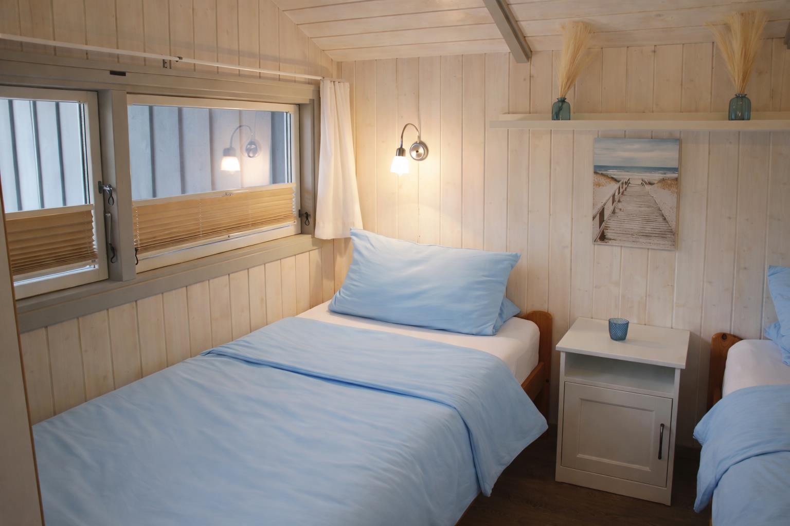 Schlafzimmer: Laminatboden, ein Schlafzimmer mit einem Doppelbett durchgängige Matratze 160x200, ein Schlafzimmer mit zwei Einzelbetten und ein Schlafzimmer mit einem Einzelbett, Kinderreisebett