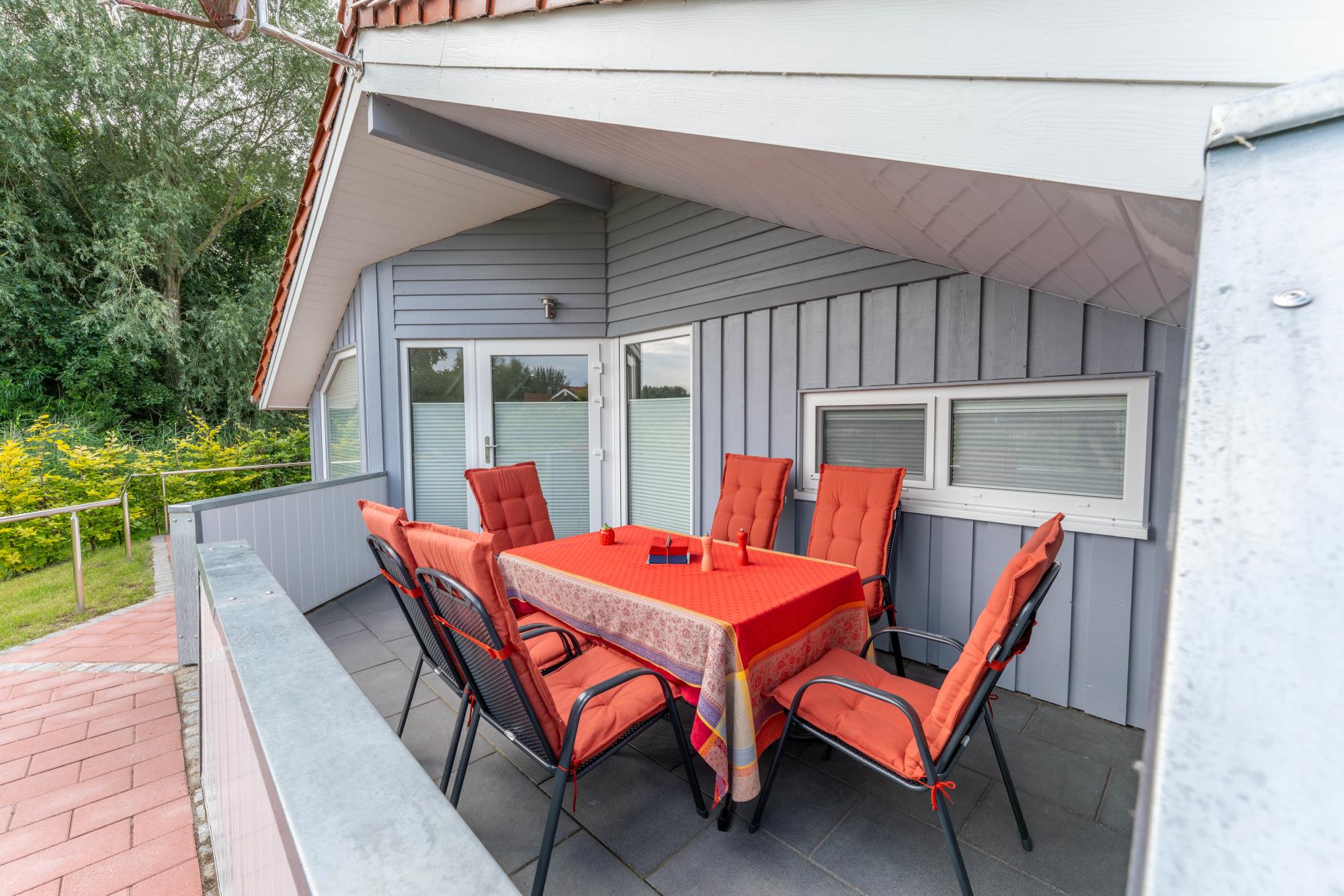Der offen gehaltene Wohnraum bildet mit der sich anschließenden Küche den zentralen Mittelpunkt dieses Ferienhauses. Die Terrasse mit Gartenmöbeln ist von Ihrem Wohnzimmer zugänglich und geht zum See raus. Zu diesem Haus gehört eine weitere kleine Terrasse die sich im Eingangsbereich befindet. Dieses Haus ist ebenerdig und barrierefrei auch im Außenbereich.