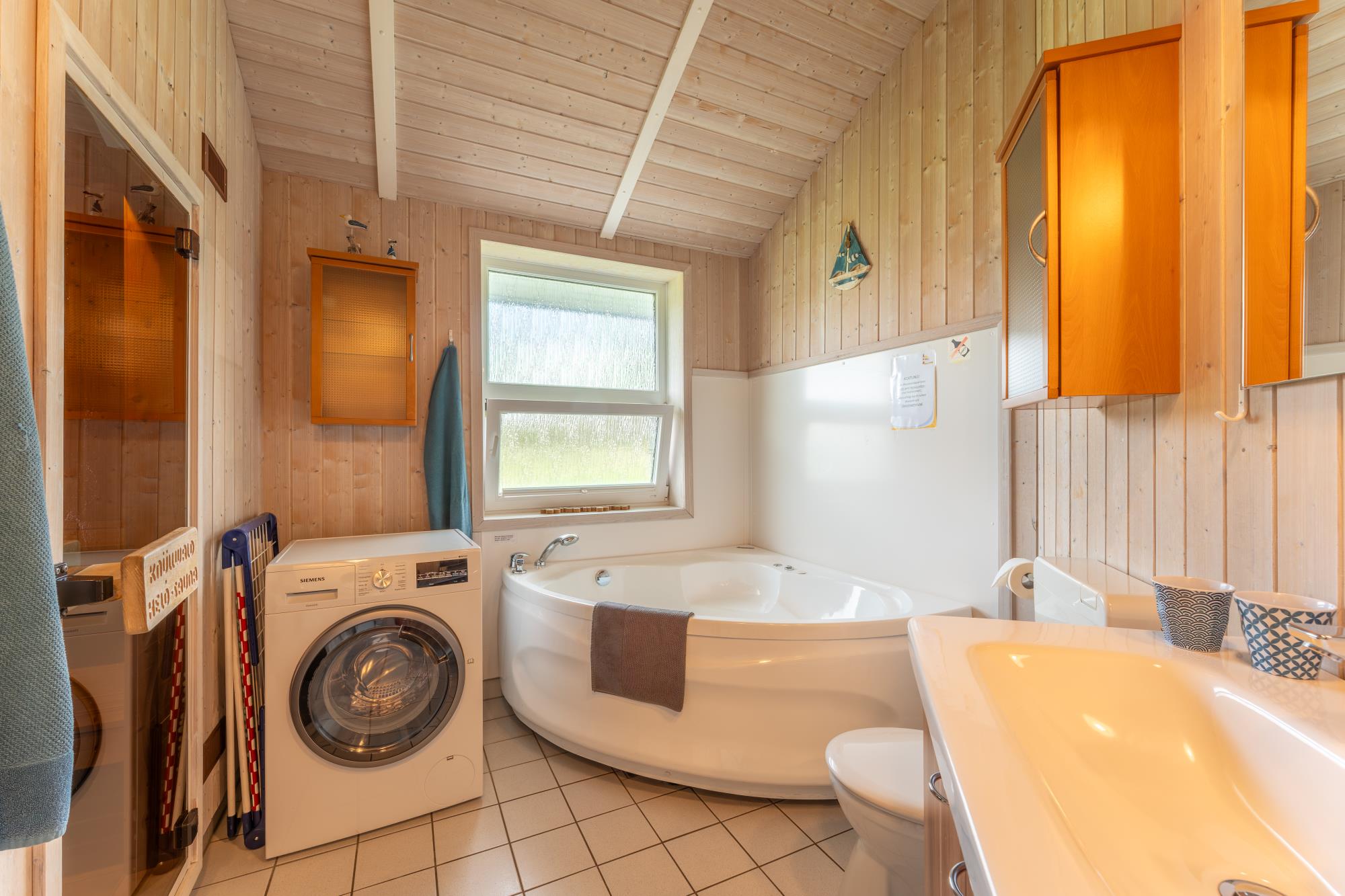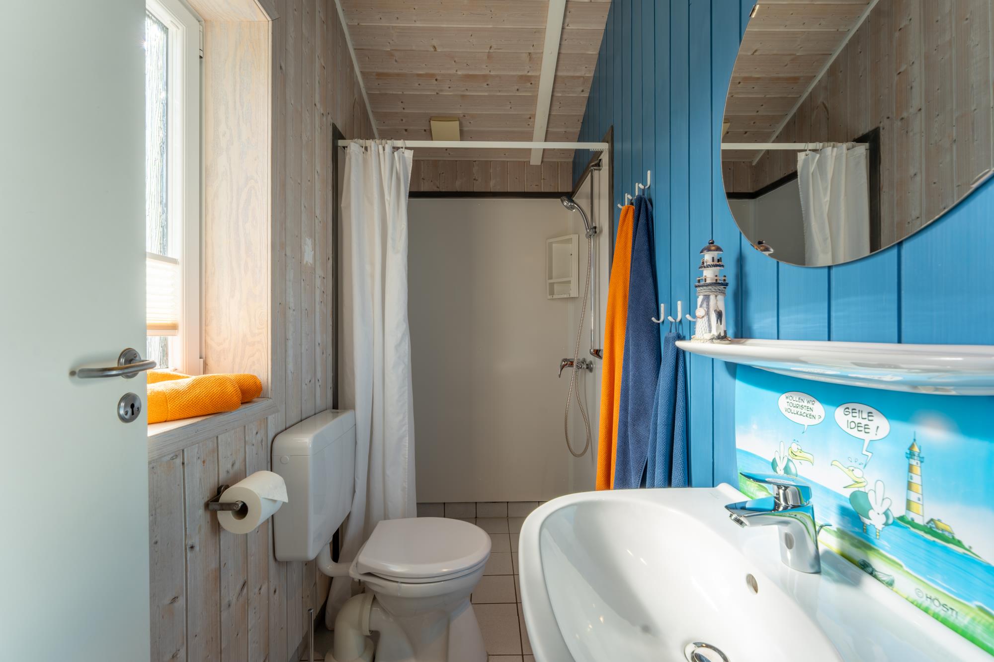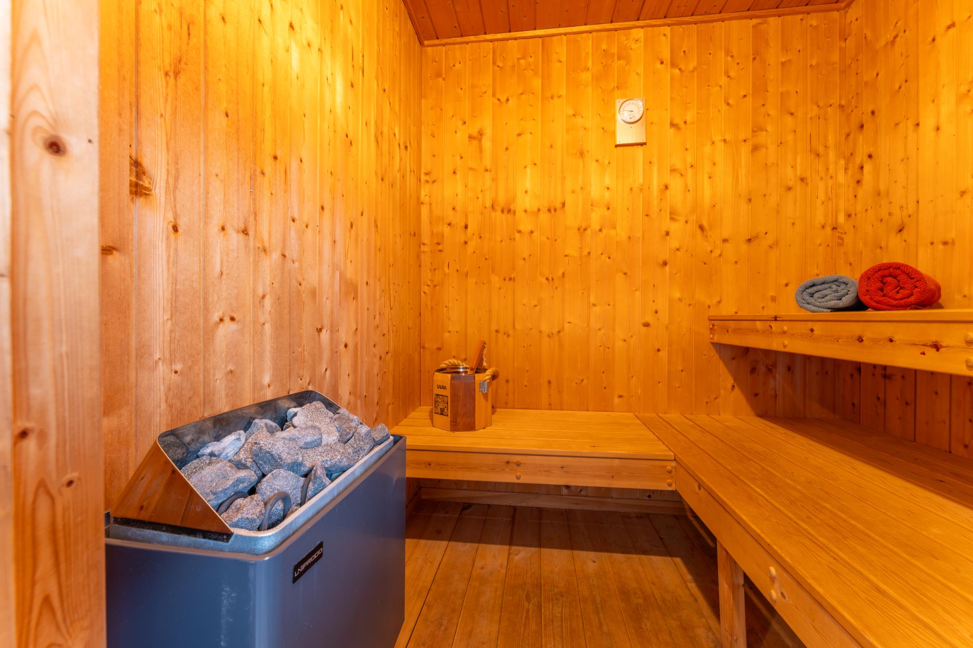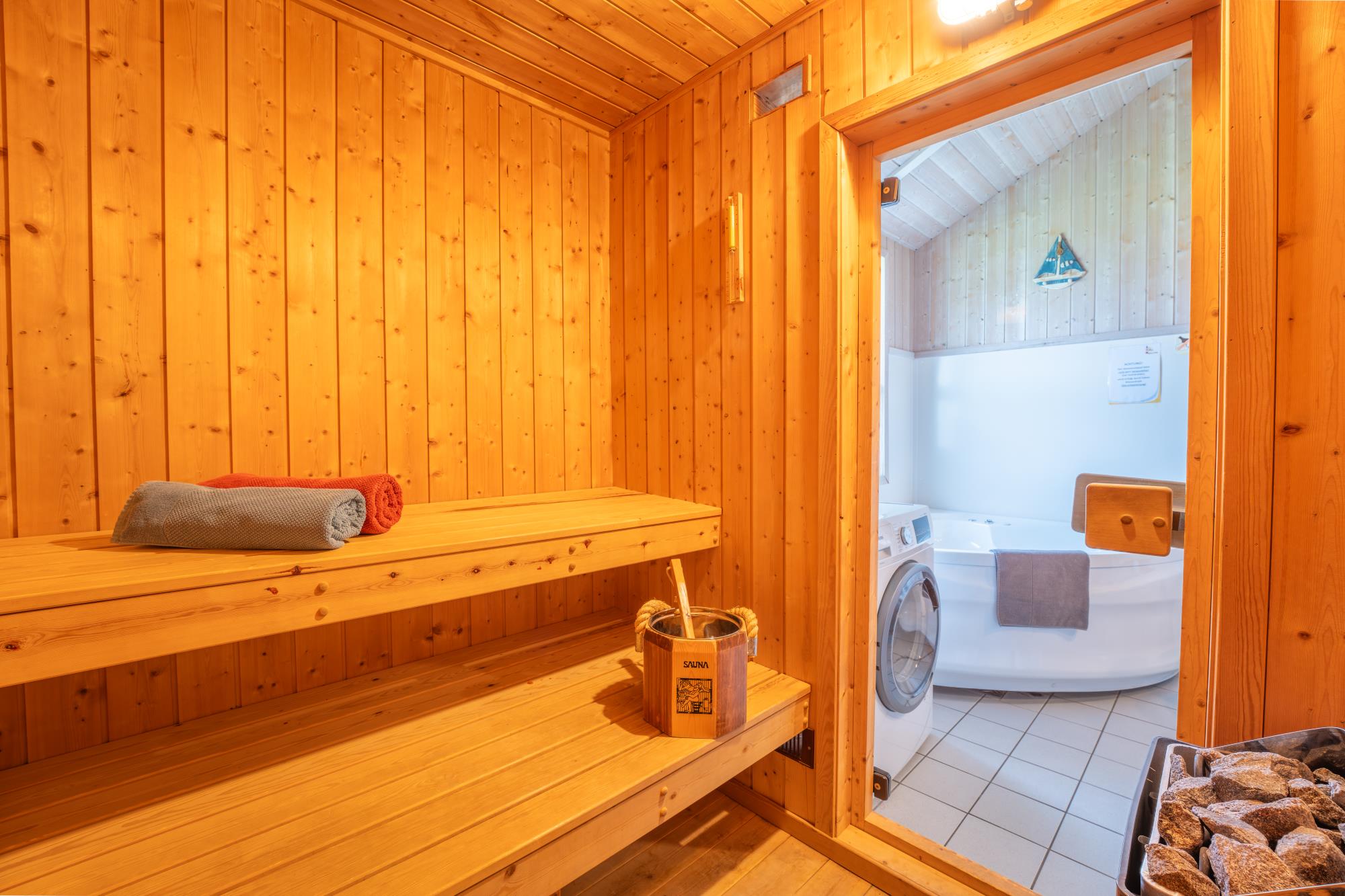 In den beiden, mit Fußbodenheizung ausgestatteten Badezimmern, befindet sich jeweils eine große Dusche und in einem Bad erwartet Sie, neben der entspannenden skandinavischen Sauna, der mit Therapiedüsen ausgestattete Whirlpool. Hier können Sie sich herrlich nach einem langen Tag in der Natur entspannen. Dieses Badezimmer ist weiterhin mit einem Waschtrockner ausgestattet.