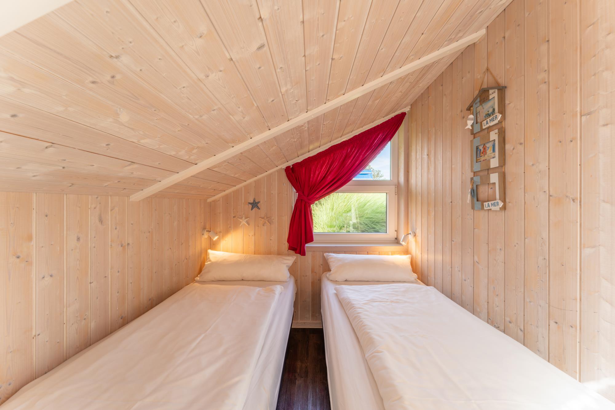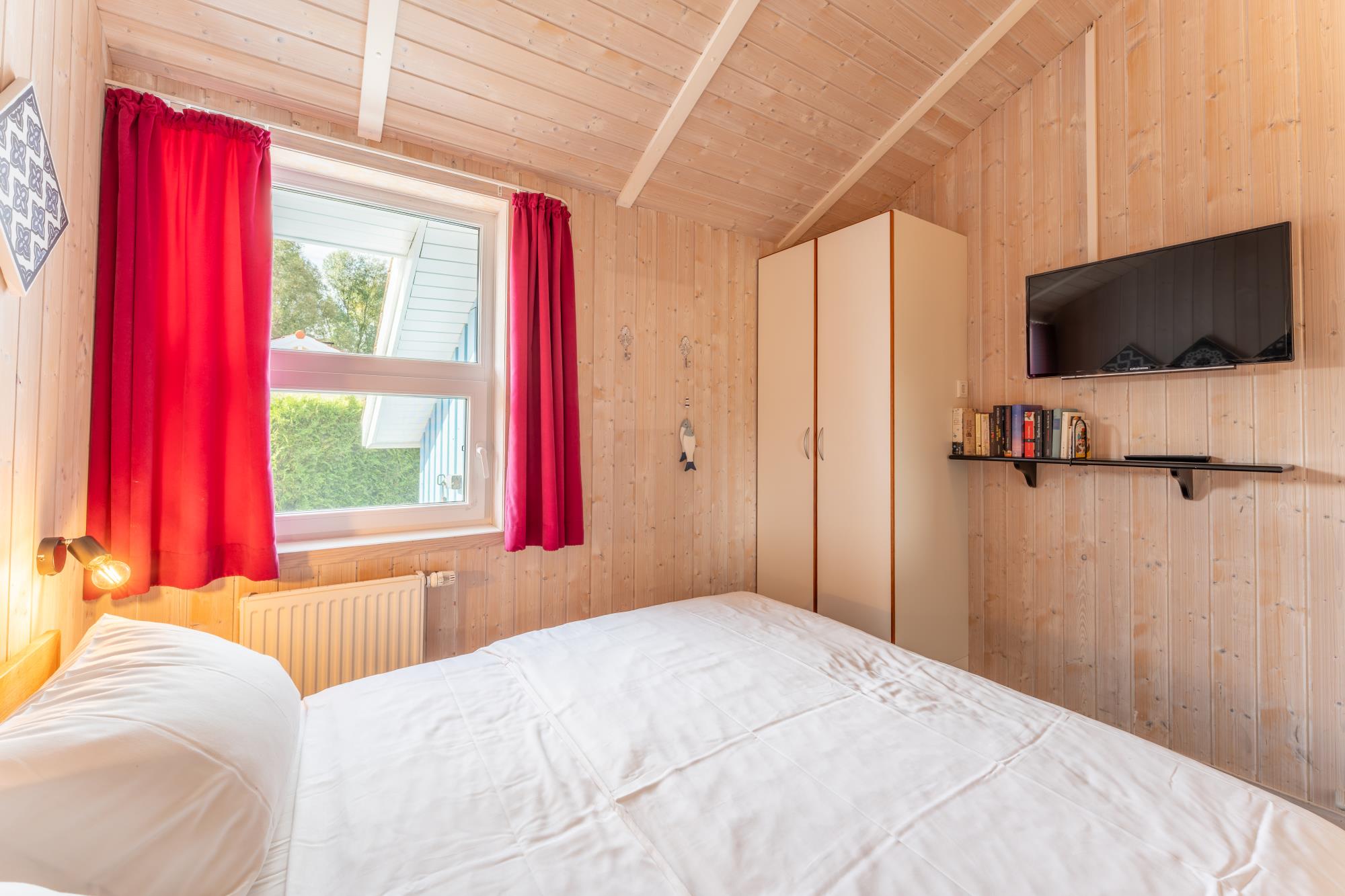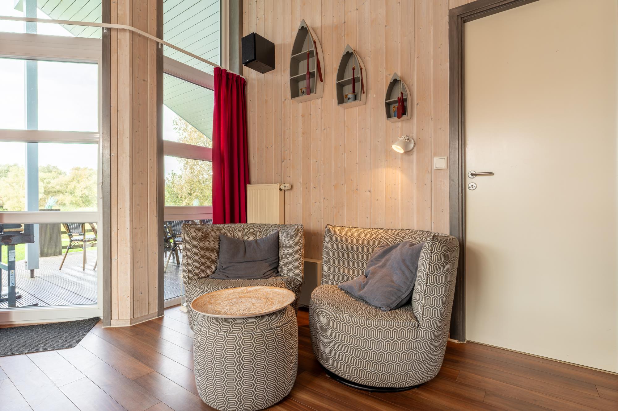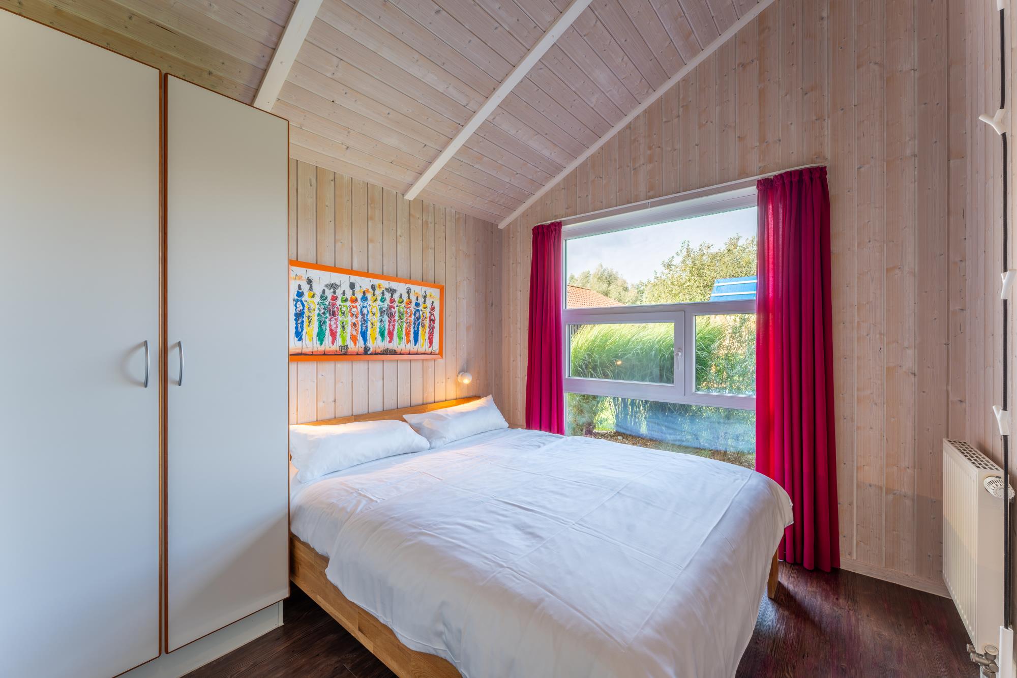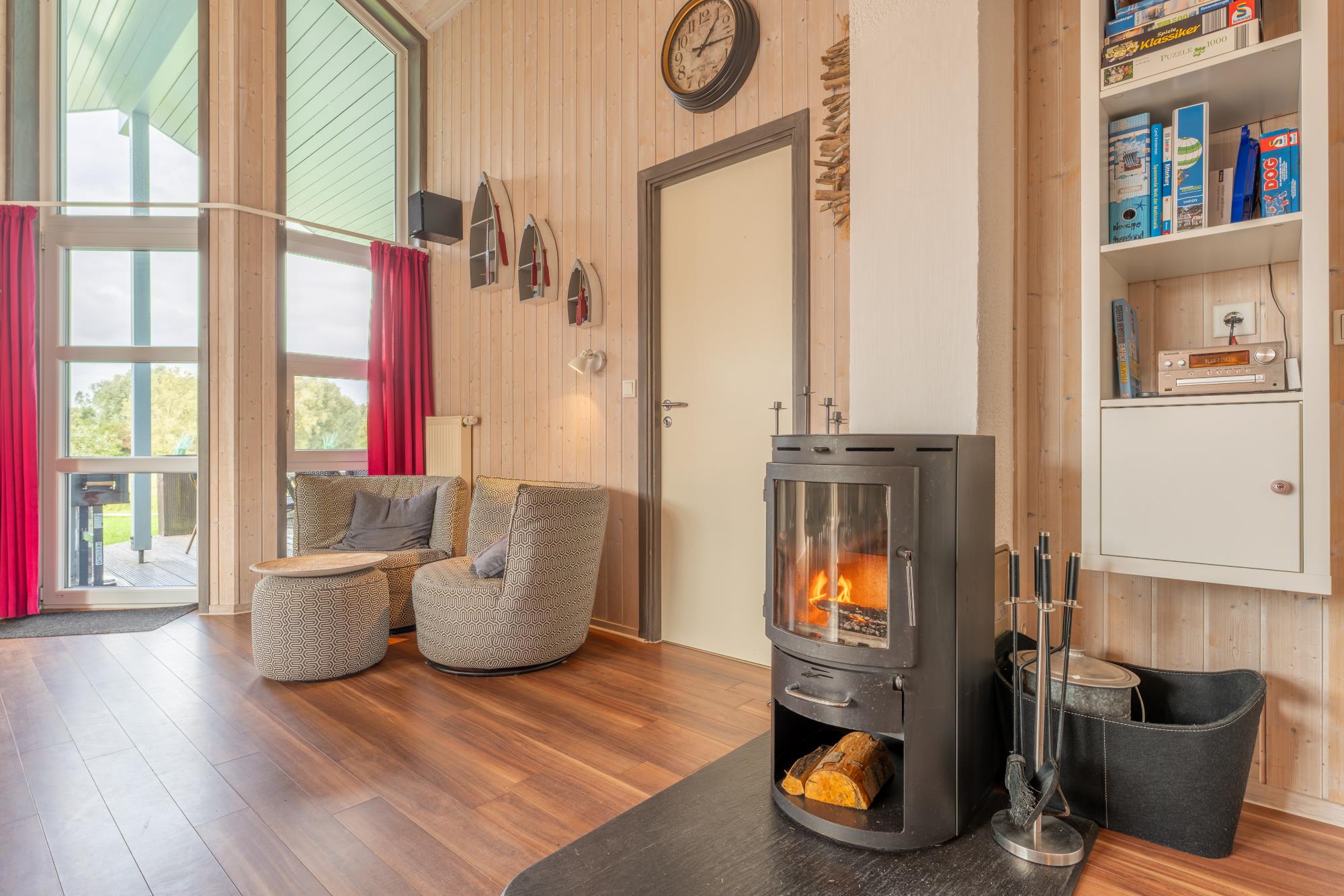 Das Ferienhaus ist 135 qm groß und besitzt 4 Schlafzimmer mit jeweils einem 1,60 m breitem Doppelbett. Ein Schlafzimmer wurde mit einem weiteren Fernseher ausgestattet. Vom Wohn-Esszimmer gehen die beiden Alkoven mit jeweils 2 Betten ab, die insbesondere bei Kindern als „Schlafhöhlen“ beliebt sind. Mit einer Matratzenbreite von 80 cm bieten sie aber auch Erwachsenen einen Platz zum Schlafen. Über dem Esstisch befindet sich ein sonniges Atelierfenster, das den Wohnraum mit viel Helligkeit versorgt. Eine Sitzgruppe lädt zum Verweilen und Fernsehen ein. Weitere Sessel befinden sich direkt neben der Terrassentür mit herrlichem Blick auf die Wasserlandschaft. Der Kaminofen sorgt an kalten Tagen für behagliche Wärme. Insgesamt ist das Haus für 12 Personen ausgestattet und für ganz kleine Gäste steht ein Kinderstuhl von Stokke und ein Kinderreisebettchen zur Verfügung. Die Küche grenzt direkt an den Wohn-/Essbereich. Sie ist u.a. mit einem Herd, einer Spülmaschine, einem Wasserkocher, einer Kaffeemaschine und einer Mikrowelle ausgestattet.
