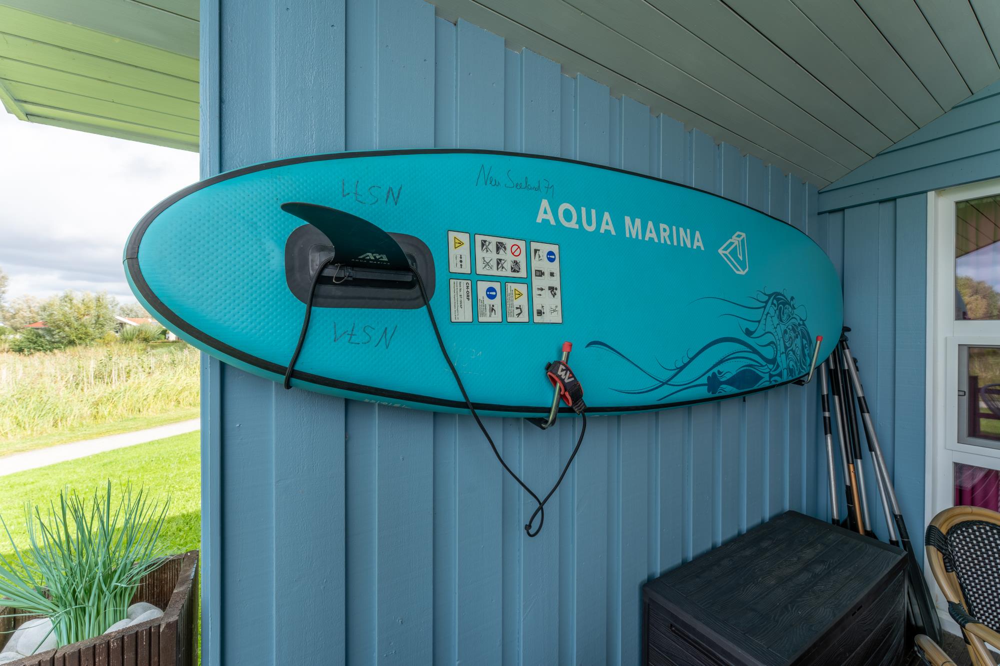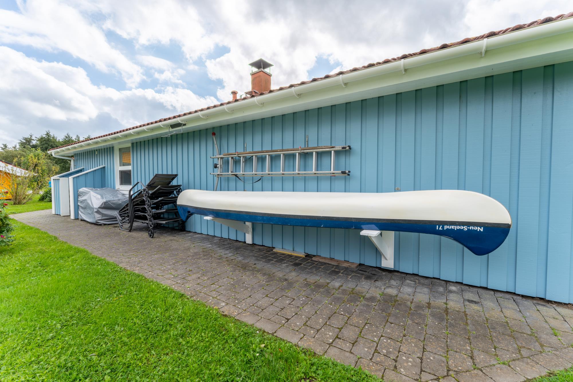 Am Haus befindet sich sowohl eine offene als auch eine überdachte Terrasse, die zum Sonnenbaden auf den Sonnenliegen und zu gemütlichen Grillabenden einladen. Neben dem hauseigenen Kanu für zwei Erwachsene und zwei Kinder (bitte beachten Sie jedoch, dass die Nutzung auf eigene Verantwortung geschieht) werden weitere Wassersportaktivitäten an der Südsee in Form von Tretbooten und einer Wakeboardanlage angeboten.