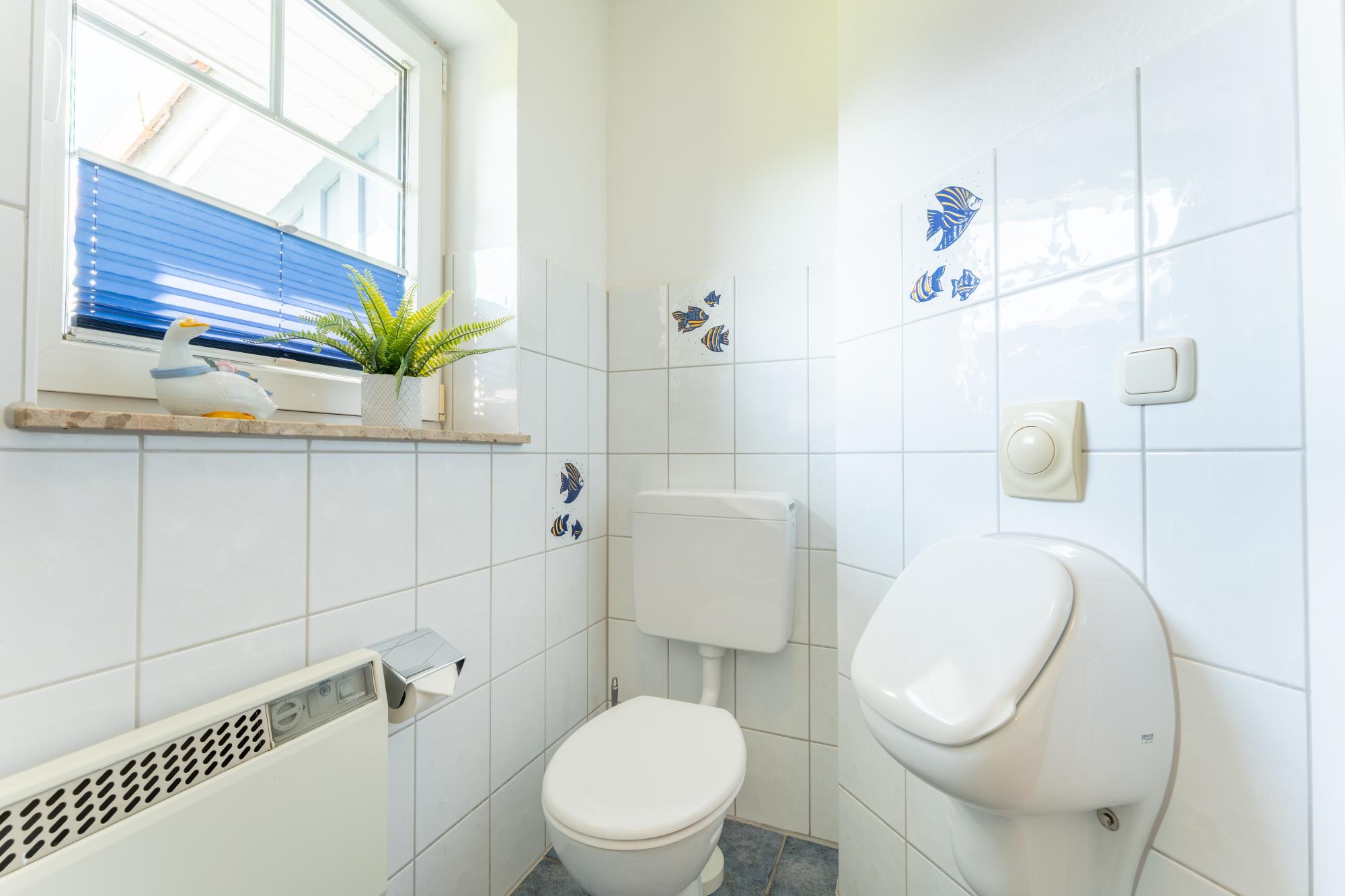 Über den großen Hausflur mit Garderobenbereich sind zwei der drei geräumigen Schlafzimmer und das Wellnessbad mit Whirlpool und Sauna zugänglich. Genießen Sie hier ganz entspannt bei wohltuenden Saunagängen die schönste Zeit im Jahr und lassen einfach mal die Seele baumeln. Zusätzlich steht Ihnen in diesem Ferienhaus ein Gäste-WC zur Verfügung.