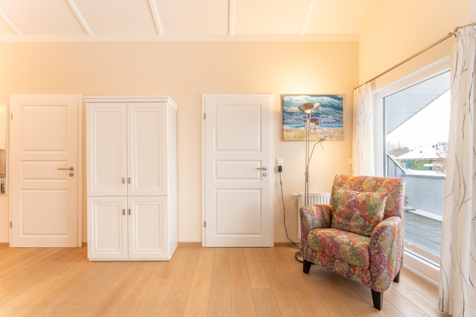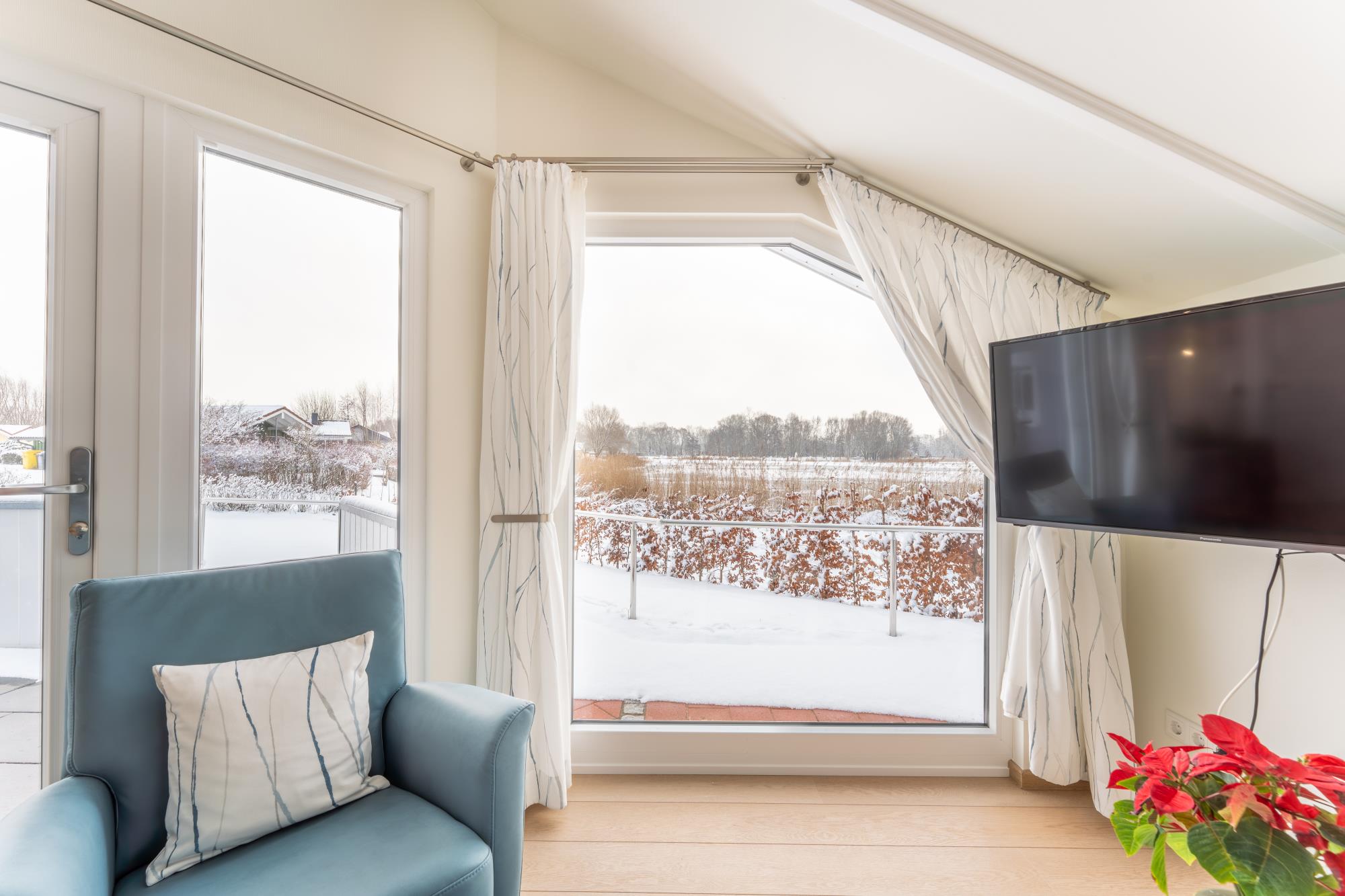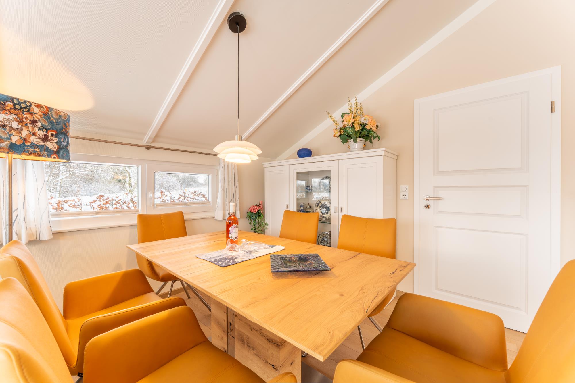 Der offen gehaltene Wohnraum bildet mit der sich anschließenden Küche den zentralen Mittelpunkt dieses Ferienhauses. Die Terrasse mit Gartenmöbeln ist von Ihrem Wohnzimmer zugänglich und geht zum See raus. Zu diesem Haus gehört eine weitere kleine Terrasse die sich im Eingangsbereich befindet. Dieses Haus ist ebenerdig und barrierefrei auch im Außenbereich.