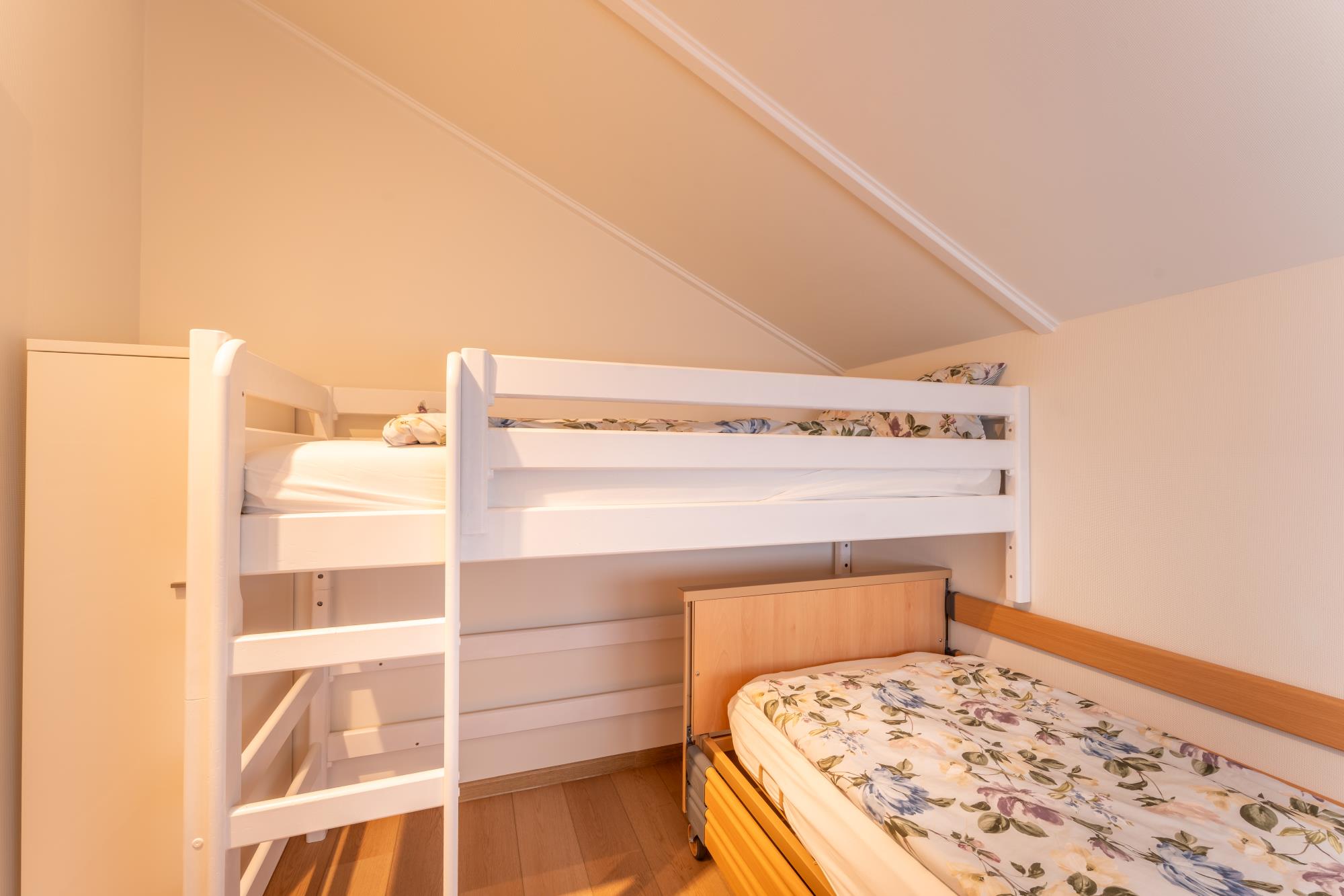 Schlafzimmer: Laminatboden, ein Schlafzimmer mit einem Doppelbett, Fernseher und ein Schlafzimmer mit einem Hochbett und einem Einzelbett, Kinderreisebett