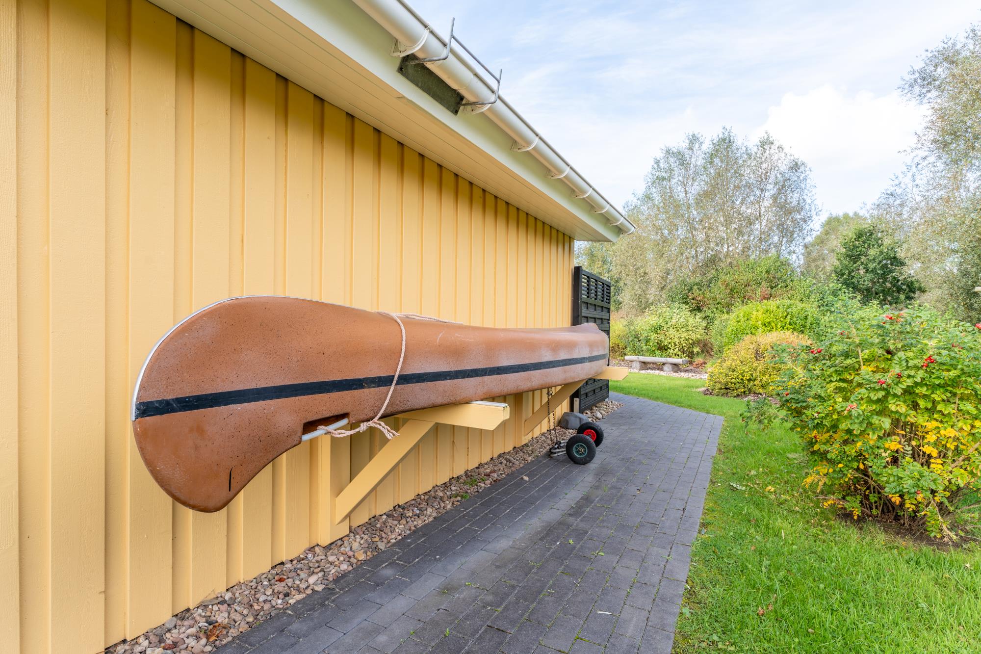 Außenbereich: Schön gestaltete Gartenanlage mit Gartenmöbel und Auflagen, Sonnenschirm und zwei Liegen, Grill, Sitzgelegenheit Holzbank im Garten, Kanu am Haus Benutzung auf eigene Gefahr