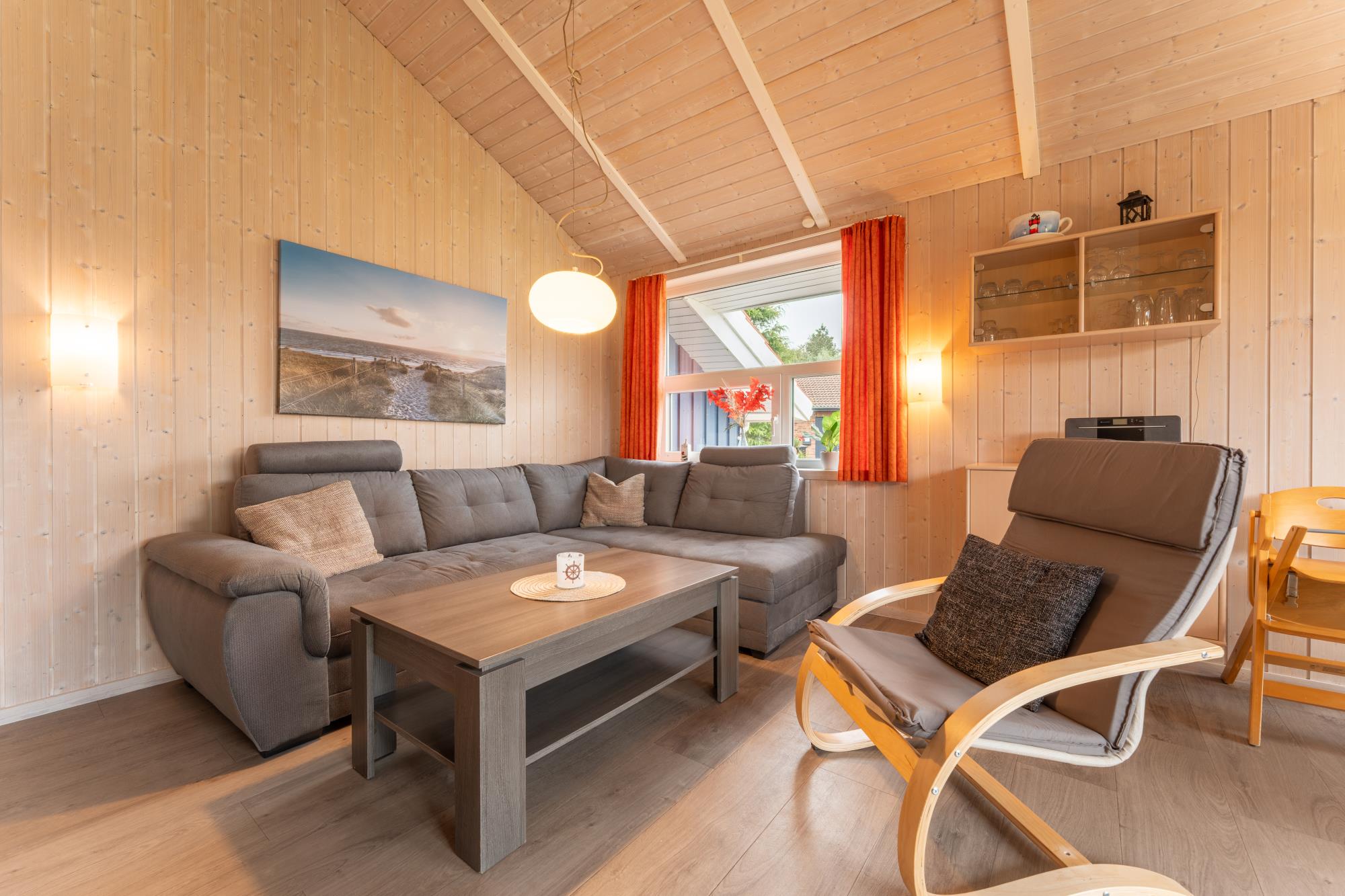 Das Ferienhaus in dänischer Holzbauweise eignet sich ideal für einen entspannten Familienurlaub oder für eine erholsame Zeit zu Zweit. Durch den offen gestalteten Wohnbereich mit Ess-/Sitzgruppe und direktem Zugang zu der voll ausgestatteten Küche, bietet Ihnen dieses gemütliche Ferienhaus viel Raum für eine gesellige Urlaubszeit. Nehmen Sie sich in Ihrem Bad mit Sauna eine entspannte Auszeit.